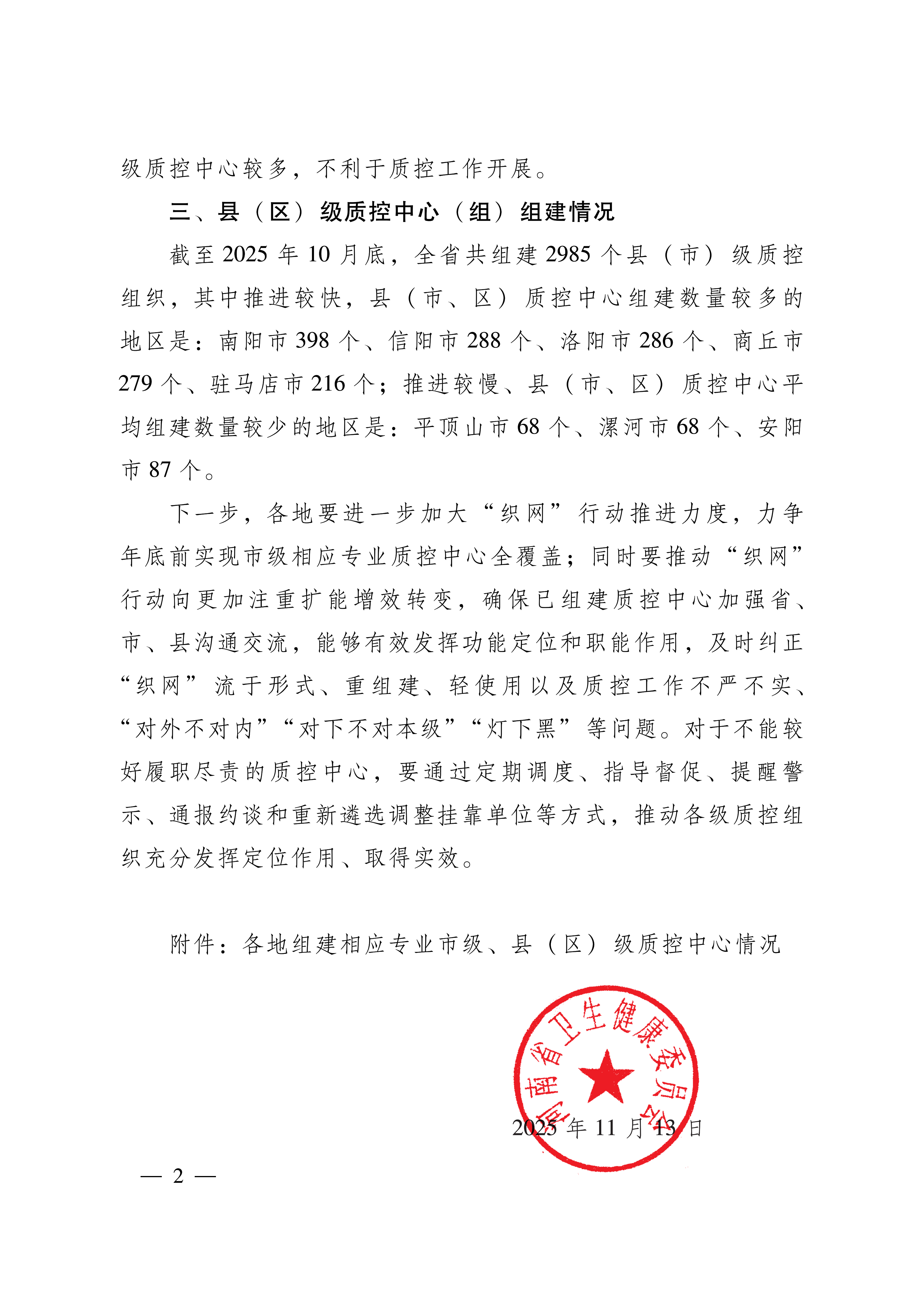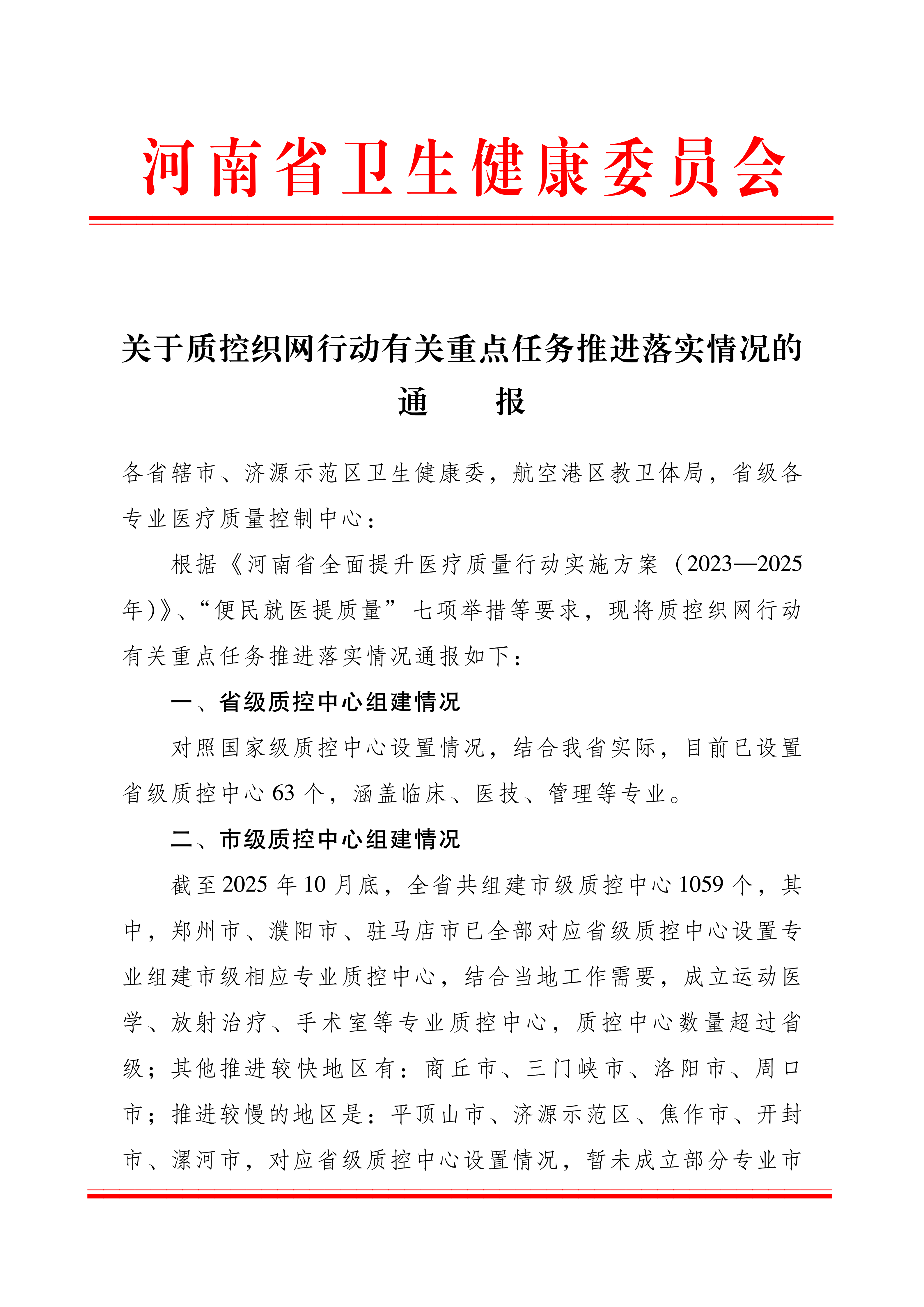 关于质控织网行动有关重点任务推进落实情况的通报
