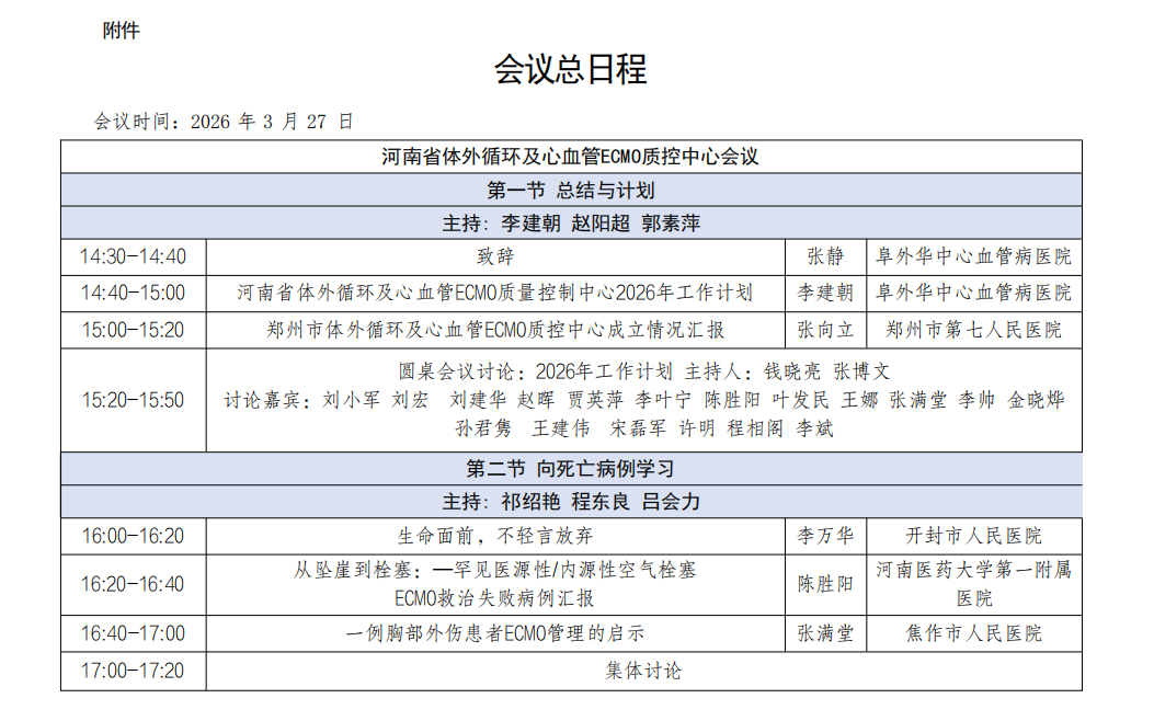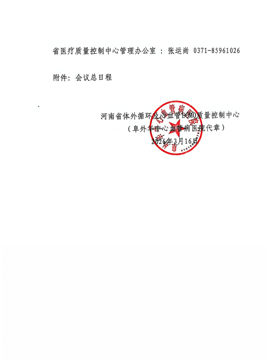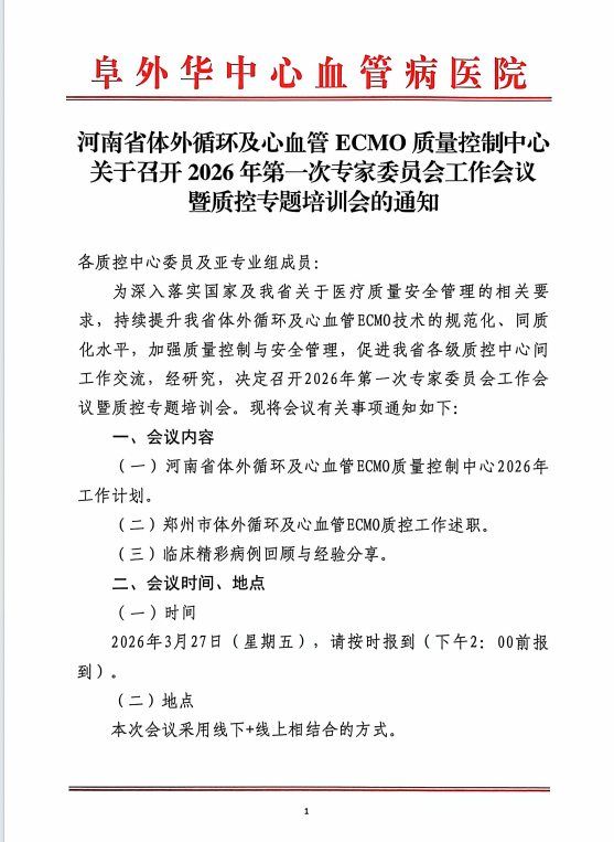 河南省体外循环及心血管ECMO质量控制中心 关于召开2026年第一次专家委员会工作会议暨质控专题培训会的通知
