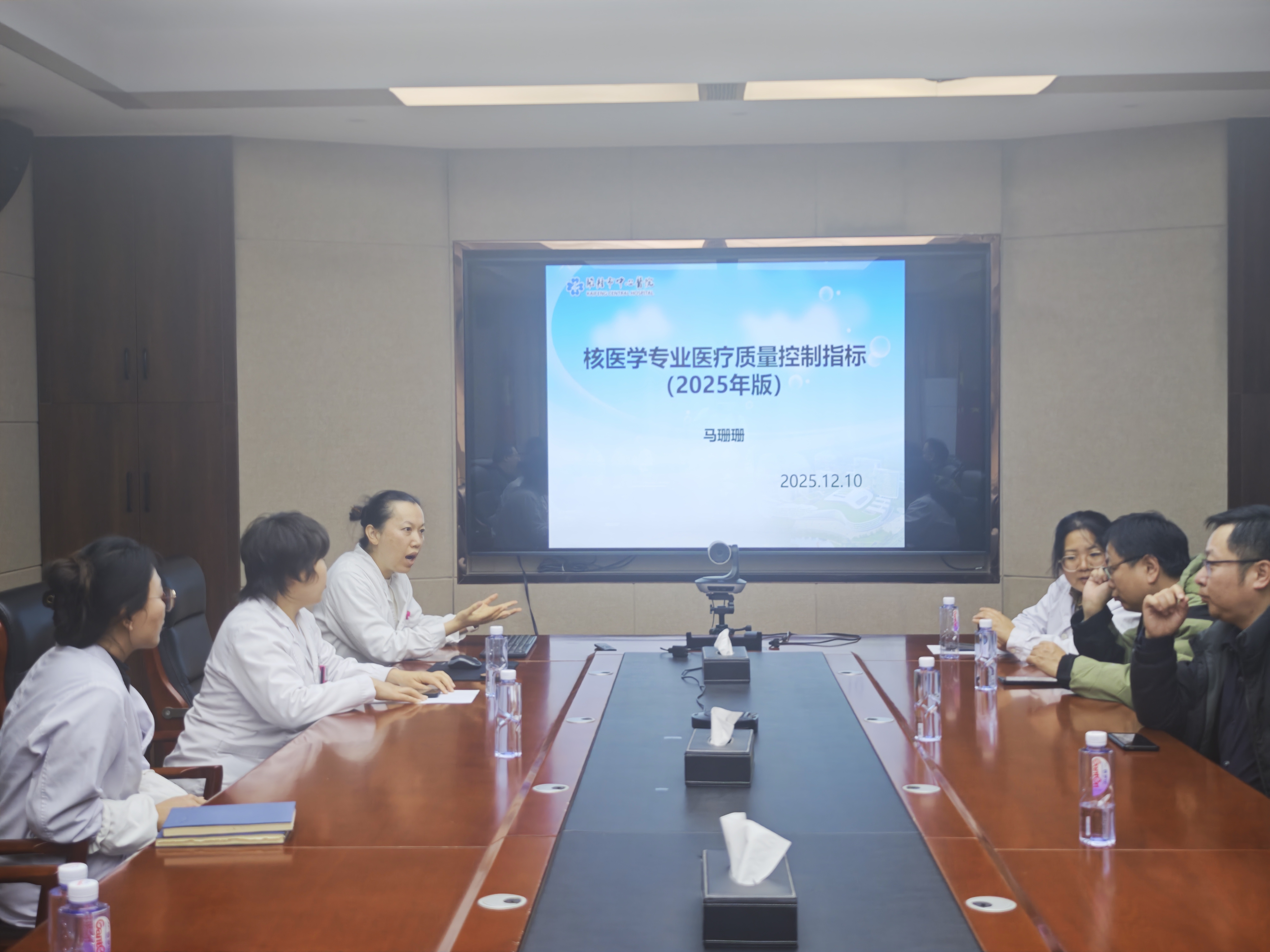 12月10日下午,开封市核医学医疗质量控制中心2025年第二次质控工作会议暨专题培训在开封市中心医院召开。开封市核医学专业质控中心专家委员会成员、各医疗机构核医学科负责人、质控专员及业务骨干近20人参会,会议由市质控中心专委会委员、开封市155医院核医学科主任张海波、河南大学一附院核医学科主任王大勇、开封市肿瘤医院影像科主任侯磊、开封市中心医院核医学科黄少南与丁利平等轮流主持。