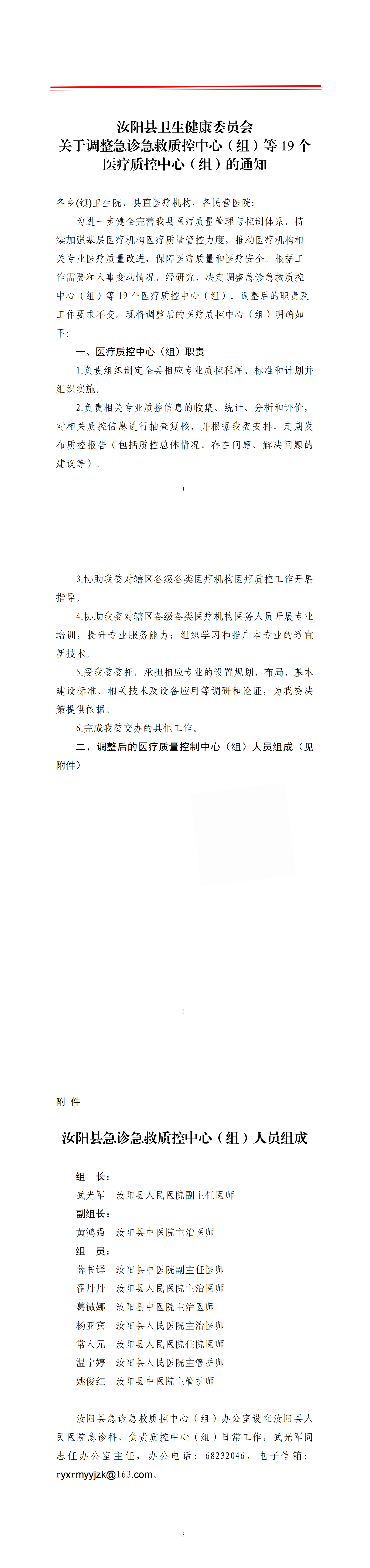 汝阳县卫生健康委员会关于调整急诊急救质控中心(组)等19个医疗质控中心(组)的通知