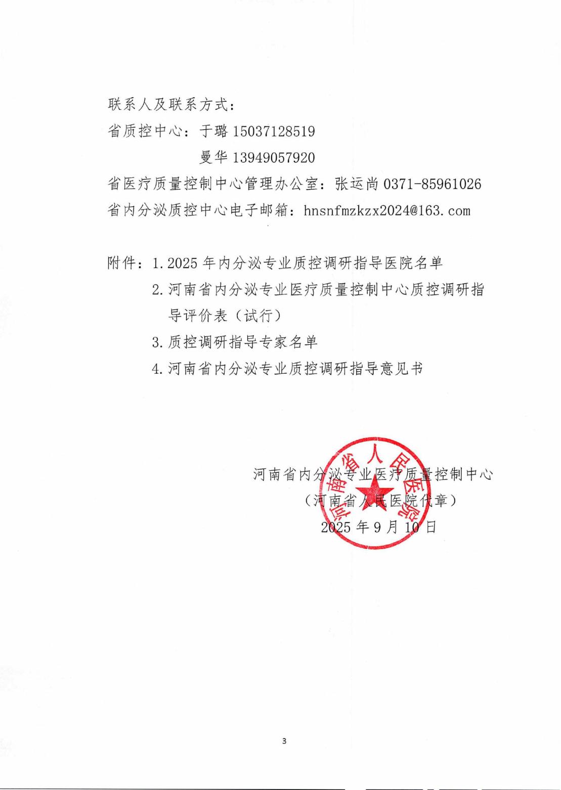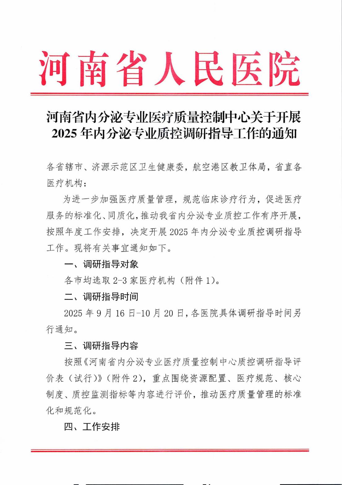 河南省内分泌专业医疗质量控制中心关于开展2025年内分泌专业质控调研指导工作的通知