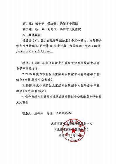 焦作市新生儿重症质控中心关于开展+2025年现场质控督导的通知