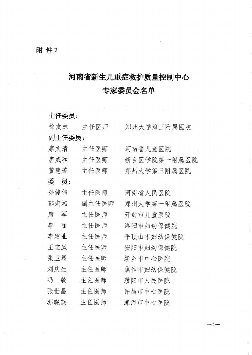 河南省新生儿重症专业医疗质量控制中心