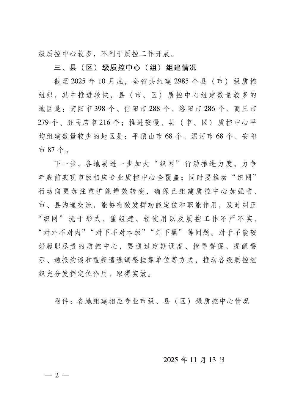 关于质控织网行动有关重点任务推进落实情况的通报