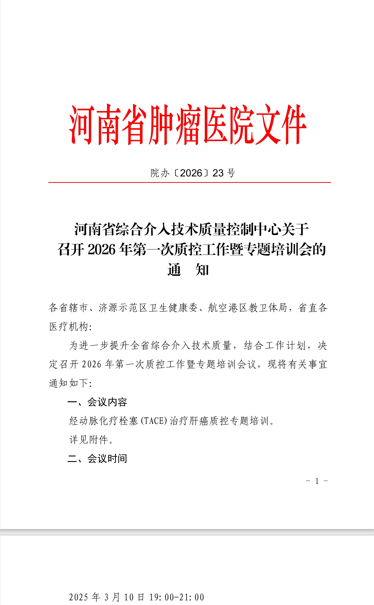 河南省综合介入技术质量控制中心关于召开2026年第一次质控工作暨专题培训会的通知